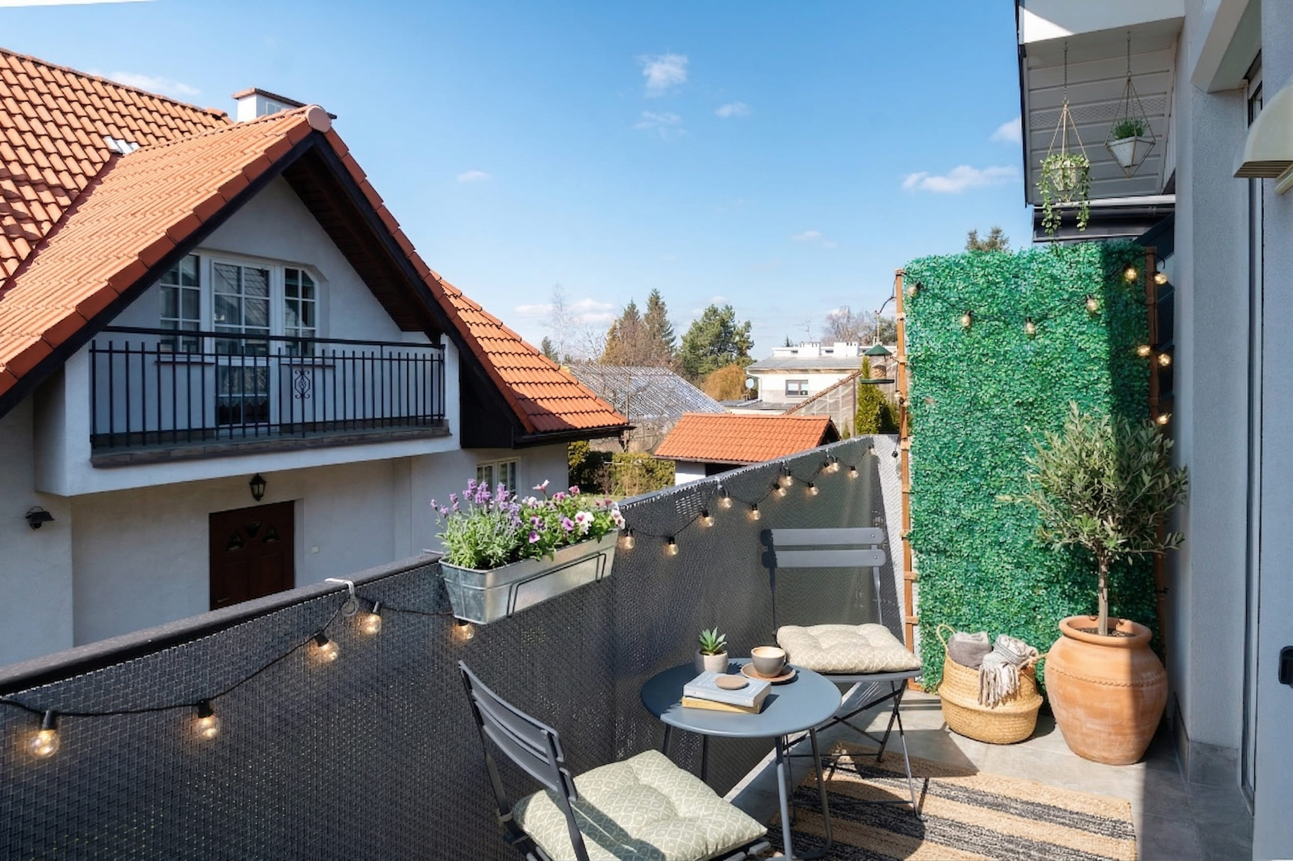 - Klimatyzacja oraz rolety zewnętrzne antywłamaniowe sterowane pilotem/aplikacją.