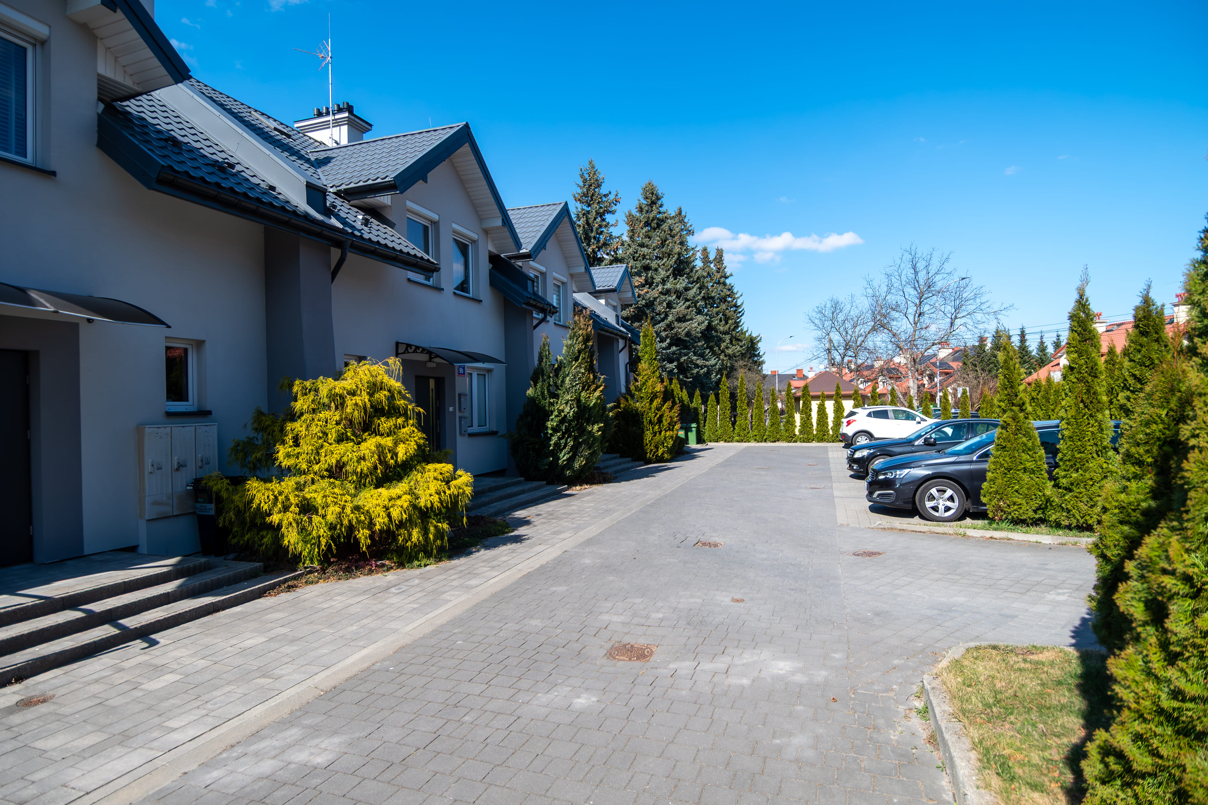 Otoczenie: osiedle domów jednorodzinnych, umiarkowanie cicho.